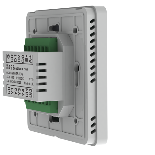 The TCR03/QCR03 Modbus controllers can be configured using Windows Device Configuration Tool (connected wirelessly using Bluetooth) or from SmartConfig iOS app. For ease of commissioning the controller address can be set from the bit switch or from the touchscreen.